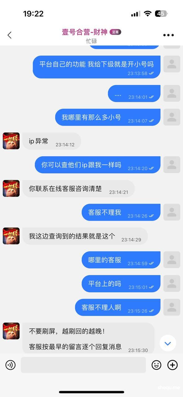 7月27日,用户在南宫系列平台【壹号】充值800元一天内赢取21万元,其中4万元转给下级,1万元提现被故意延迟到账。最终,用户输掉7万元,账号及下级账号被封,提现被冻结。提示玩家警惕,频繁转分触风控,代理需谨慎。