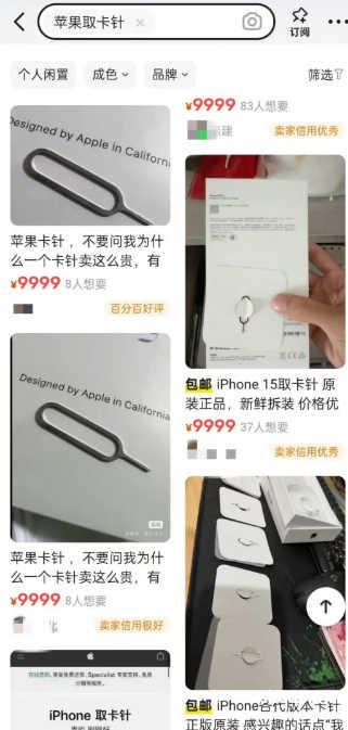 除此之外,以前还有一个很迷的黑话“苹果取卡针”,莫名其妙地被赋予了色情交易的含义。文案配上:“不要问我一个卡针为什么卖这么贵,有些东西不是用价值来衡量的”。