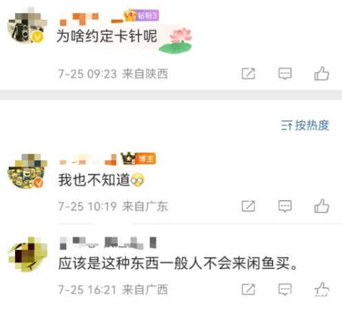 有网友好奇为什么约定为“卡针”,“这种东西一般不会来闲鱼买”或许是答案。