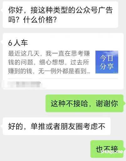 对方加你微信之后,都会问你接不接广告。