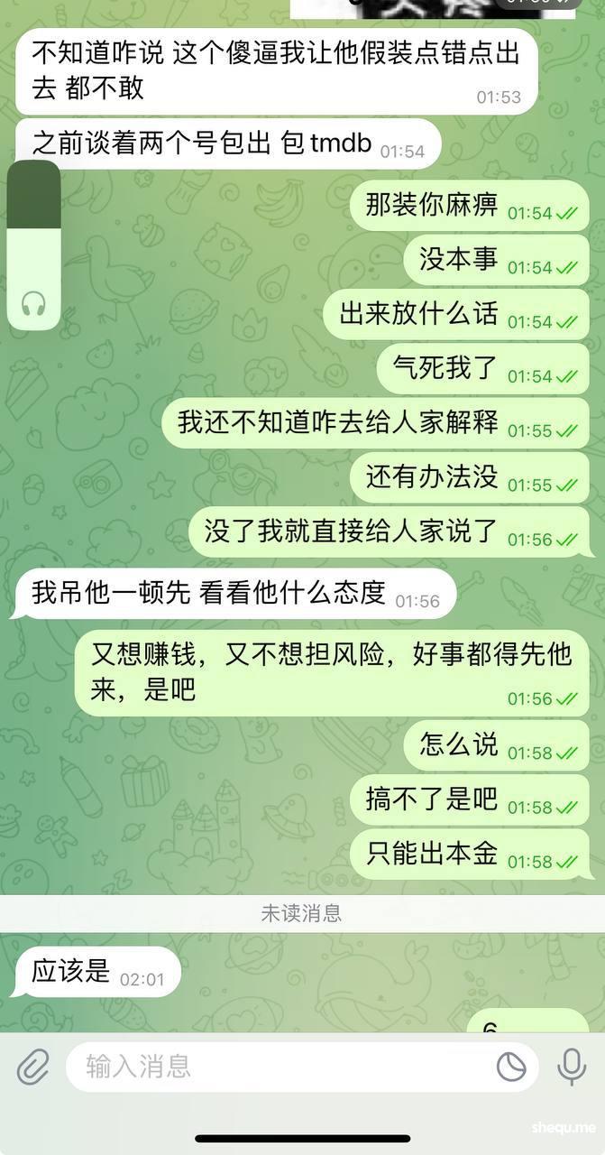 以为是风控组长,再加上我朋友我们也认识很久了,就相信他去注册了一个号,也没有上压。打完了告诉我各种原因出不了款。妈的,逗我玩儿呢?注单、账号要是没有任何问题,找他干吗?又不想担风险,又想分钱?合着跑来白嫖我来了!
