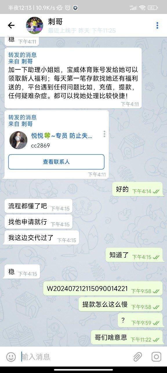 宝威体育欧洲杯后开始收割玩家,本人充值1000玩电竞跟百家乐赢到7000,平台一直卡审核,上级代理消息已读不回玩消失,彩金客服直接拉黑我,黑平台大家避雷。
