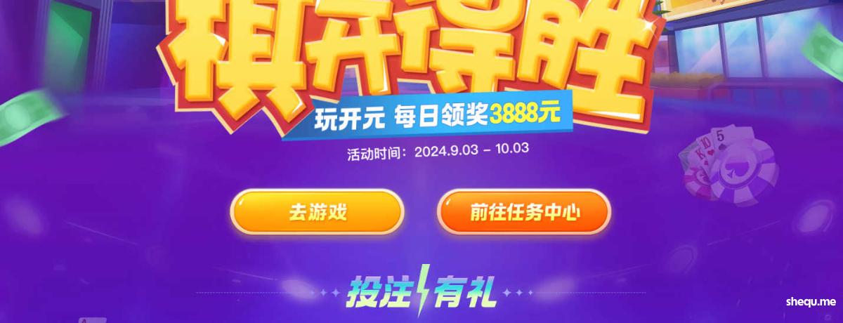 玩开元 豪礼多多送 每日领奖 3888元 活动时间:2024年9月3日-2024年10月3日